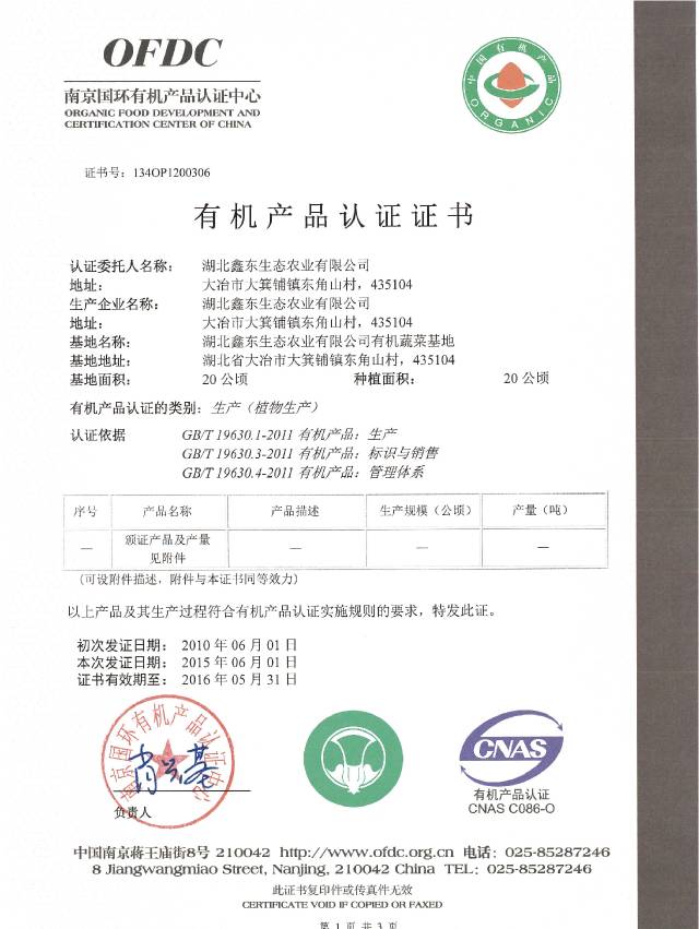 鑫東以總部基地的品質為標桿,認真的考察了中國一些農產(chǎn)品的地理標志性產(chǎn)地,并在湖北利川、河南靈寶、內蒙古科爾沁草原等地建立了高山蔬菜、高山水果、牛羊、雜糧等基地。為了確保產(chǎn)品的品質,我們在生產(chǎn)管理過程中完全參照南京國環(huán)OFDC有機認證中心提供的有機生產(chǎn)標準,并建立完善的二維碼質量追蹤體系。