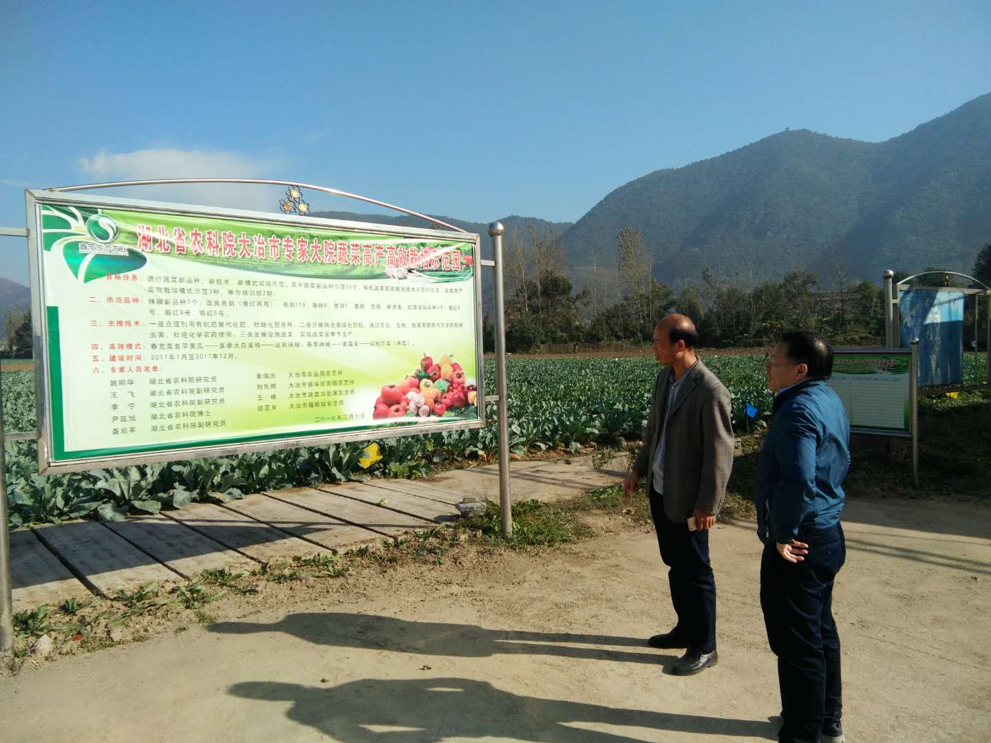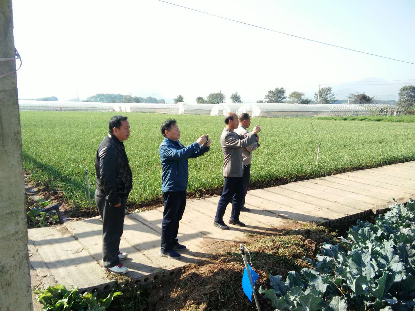 劉局長(zhǎng)與姚教授先到有機(jī)蔬菜菜地參觀