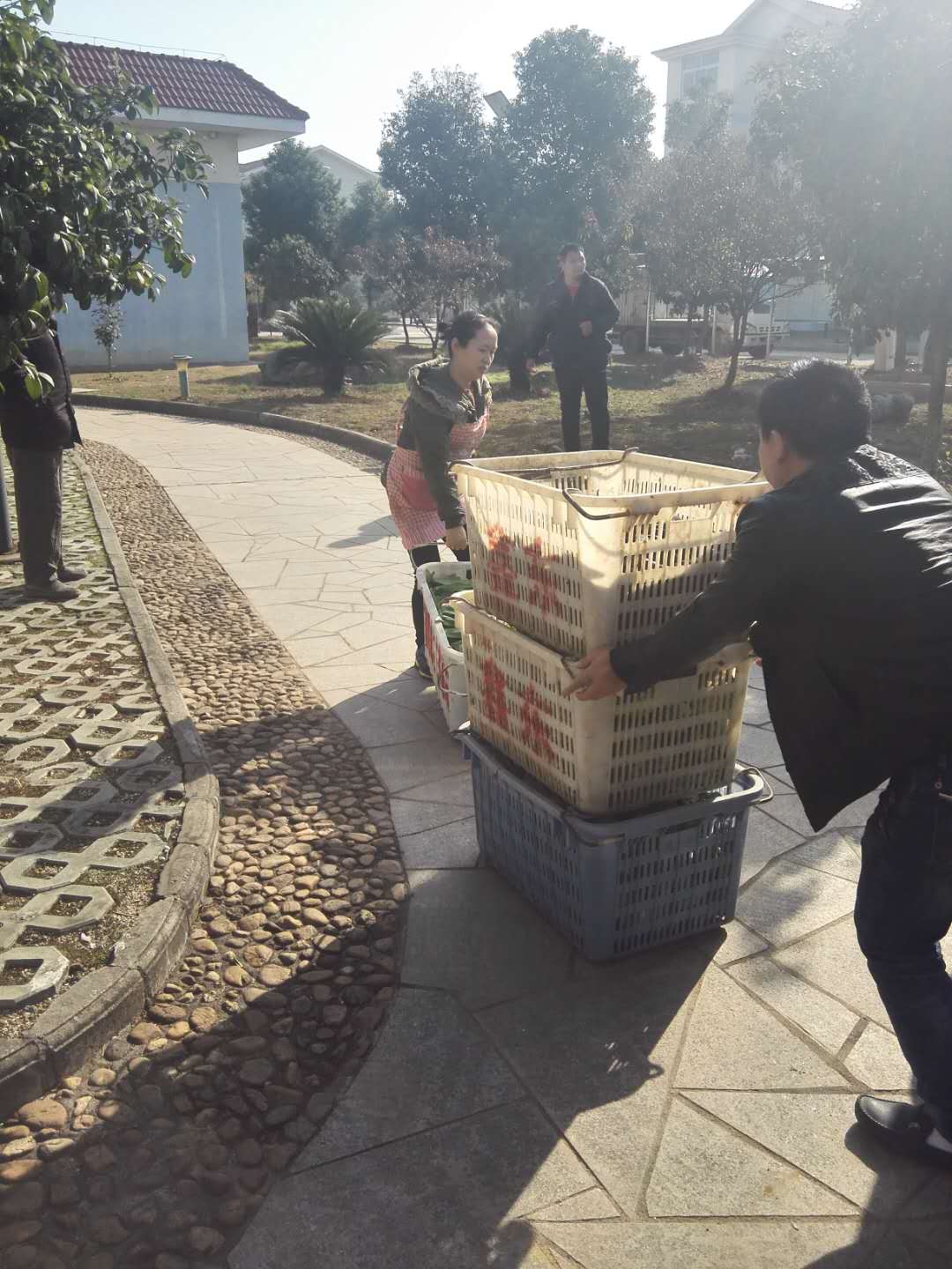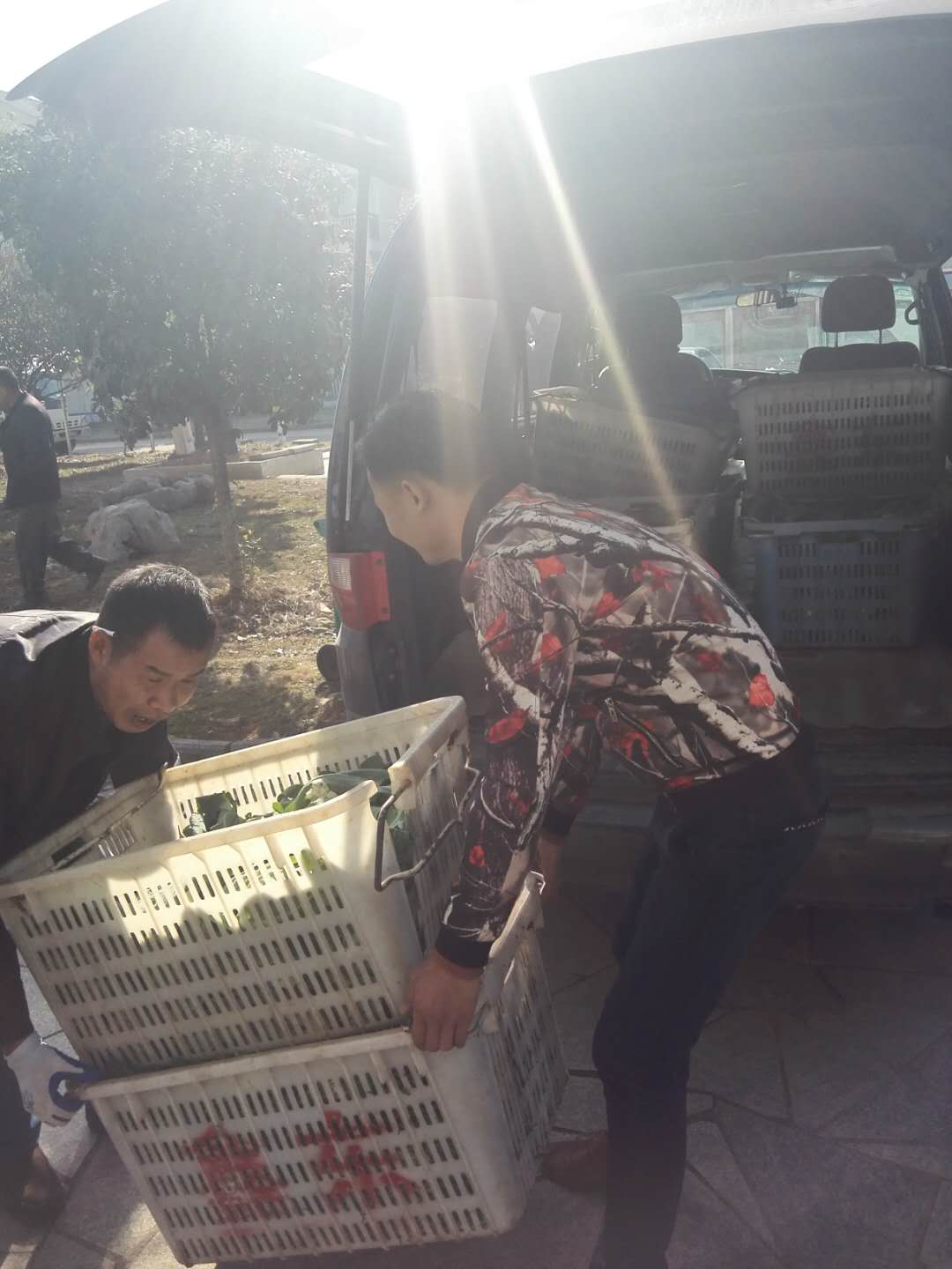 大冶社會(huì)福利院的工作人員幫忙抬有機(jī)蔬菜,并一再感謝鑫東公司的愛(ài)心。